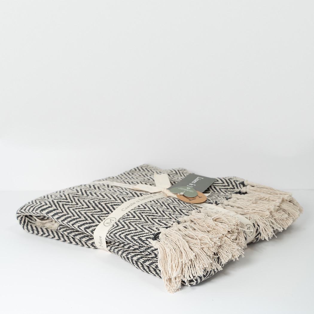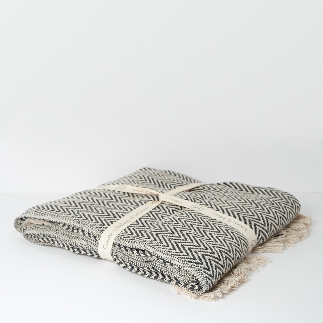 Diese moderne  Decke in Größe 130 x 170 cm eignet sich perfekt für ein Picknick oder einen Strandtag.