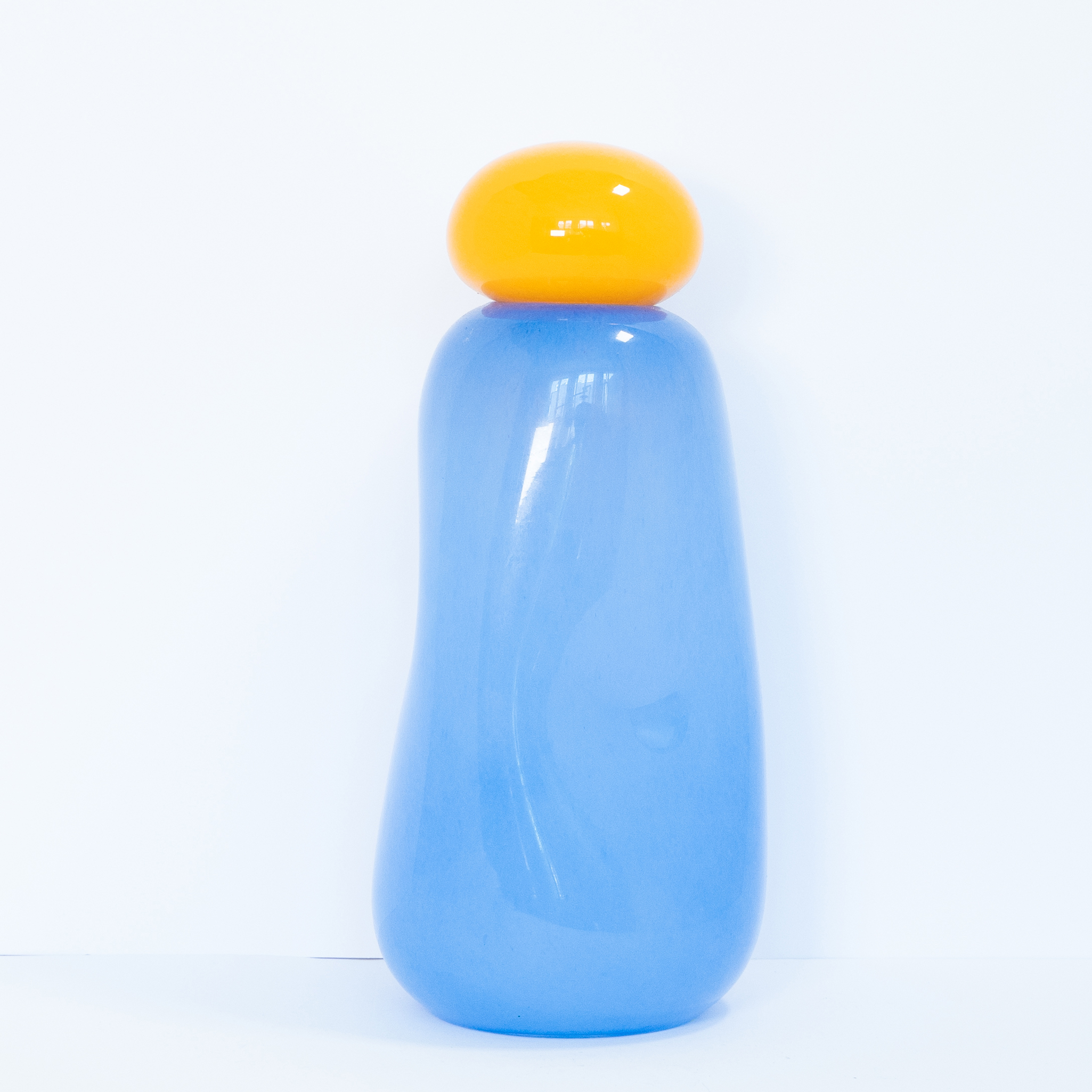 sie ist aus mundgeblasenem Glas und in Handarbeit hergestellt.