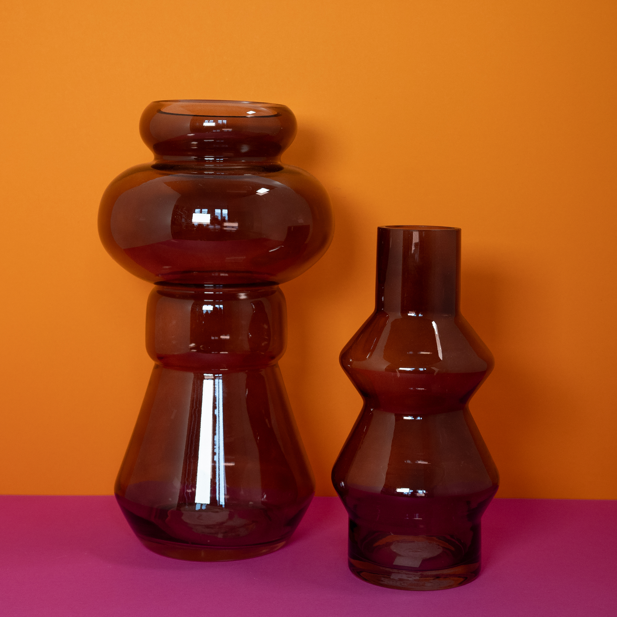 Vase Glas eckig rot braun