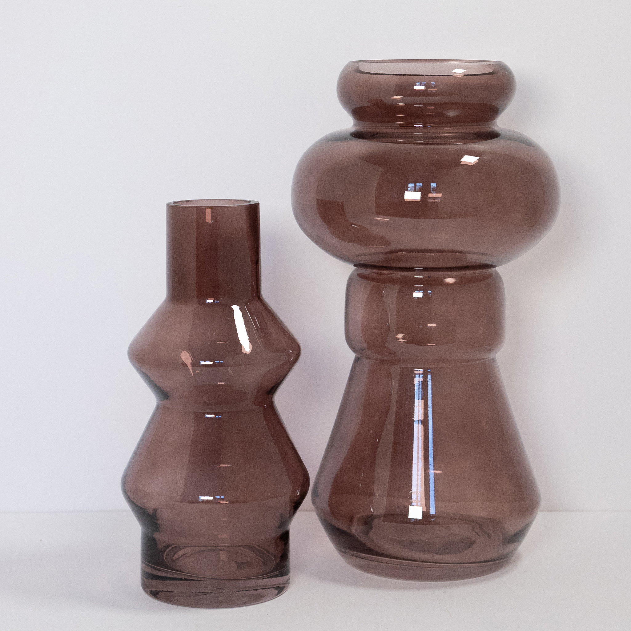 Diese Vase aus getöntem Glas freut sich über extravagante und ausladende Blumensträuße.