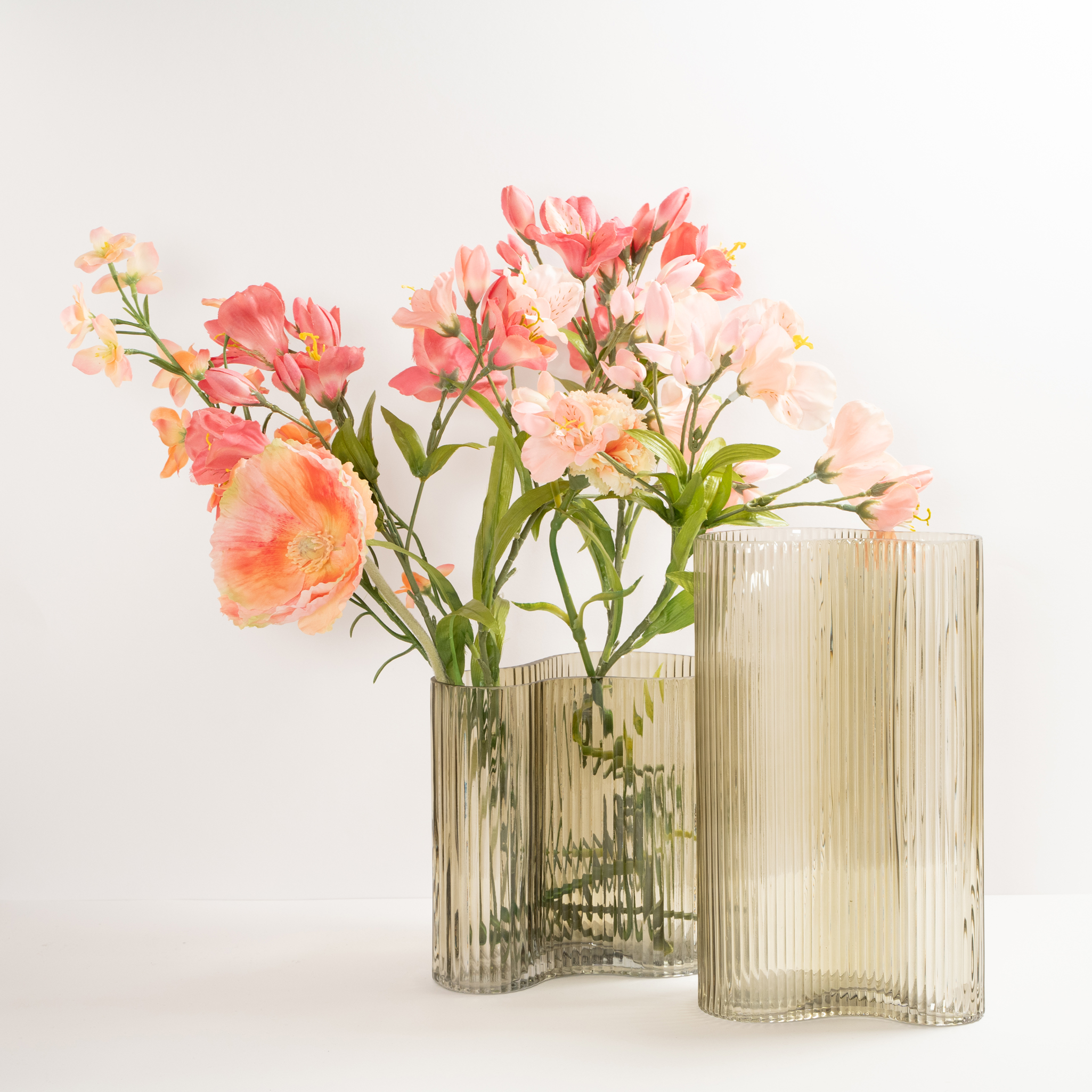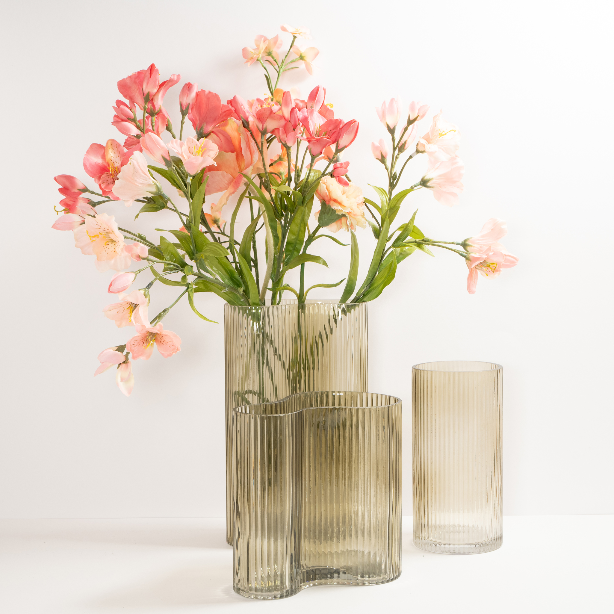 Diese Vase aus Glas mit dem modernen Schwung sieht alleine oder auch in Kombination toll aus.