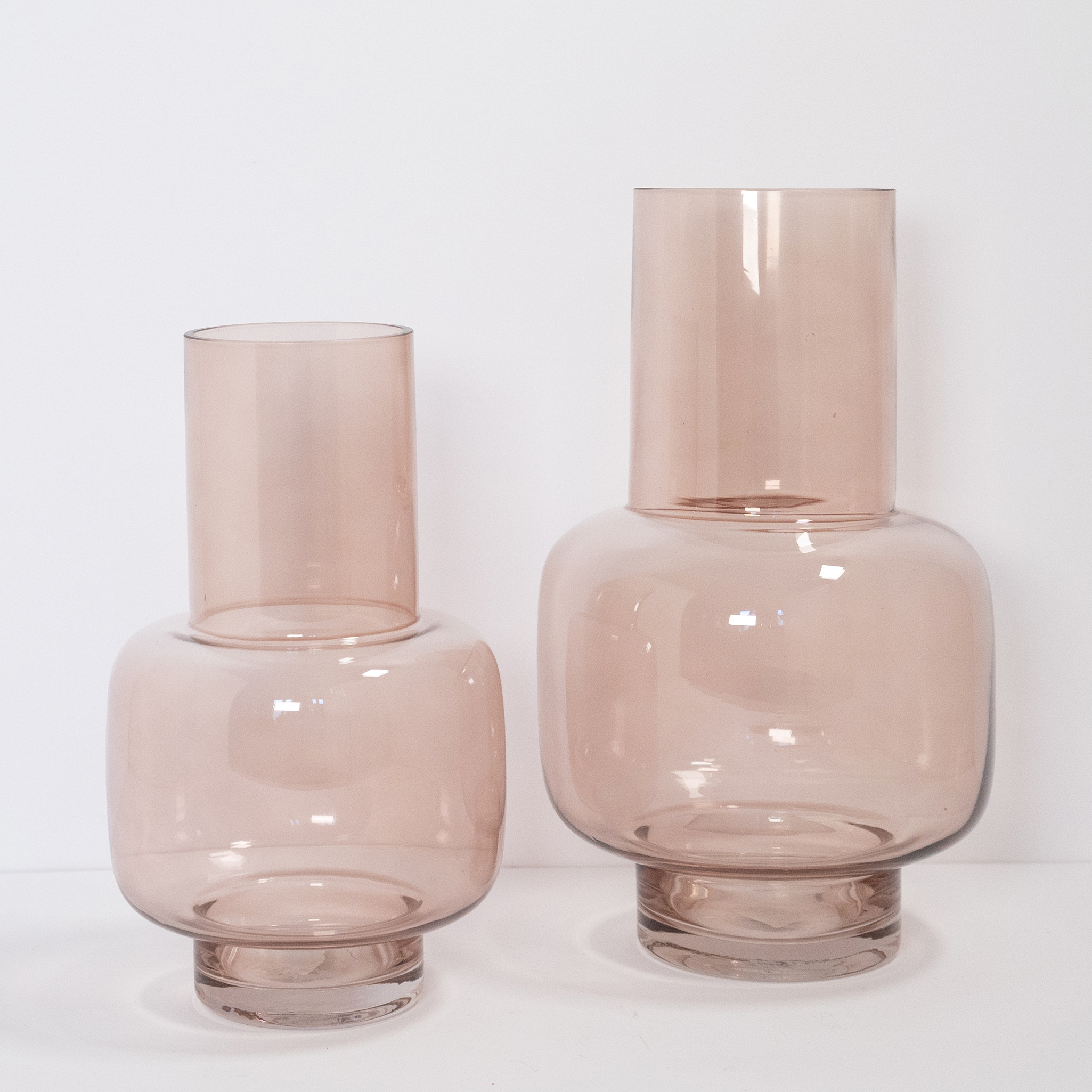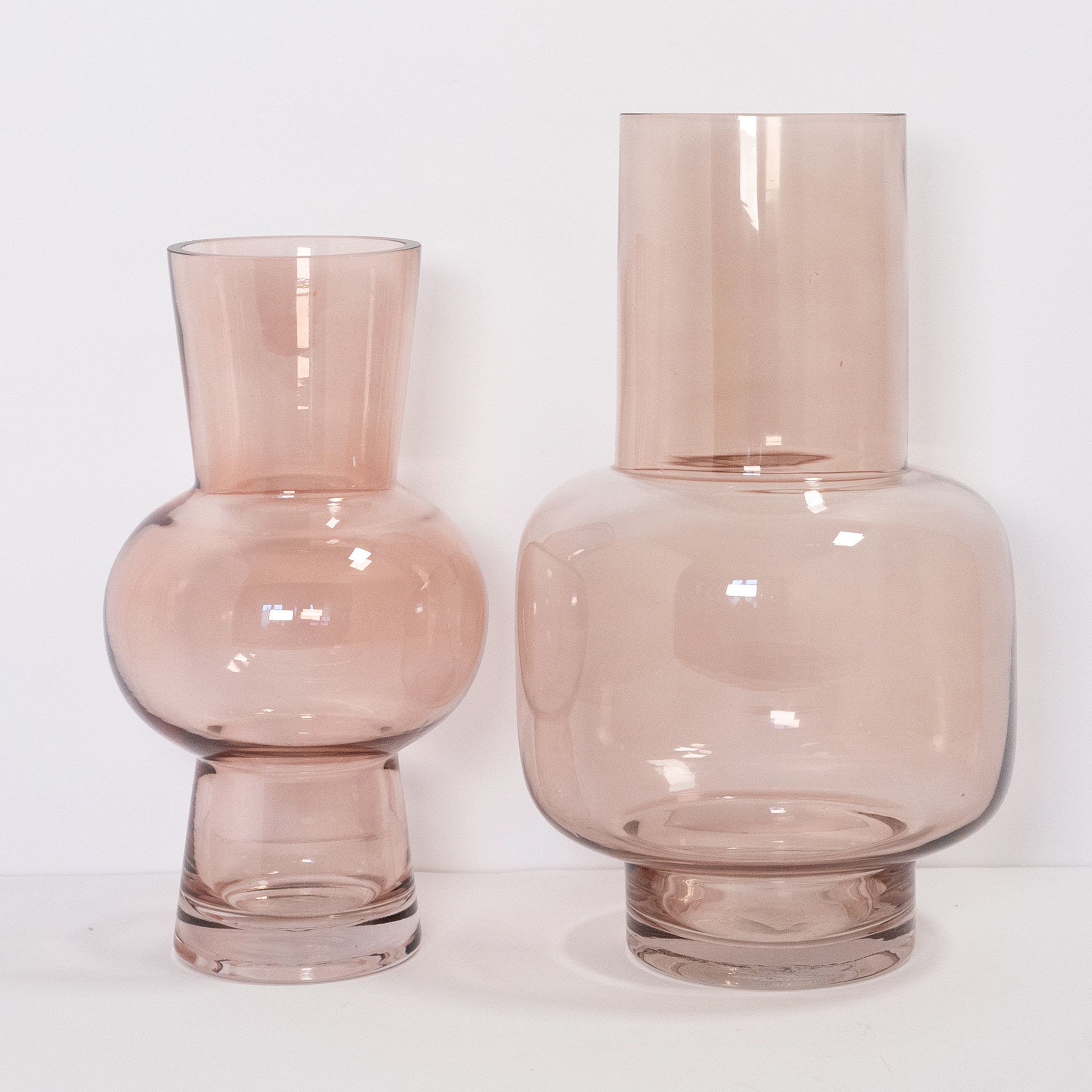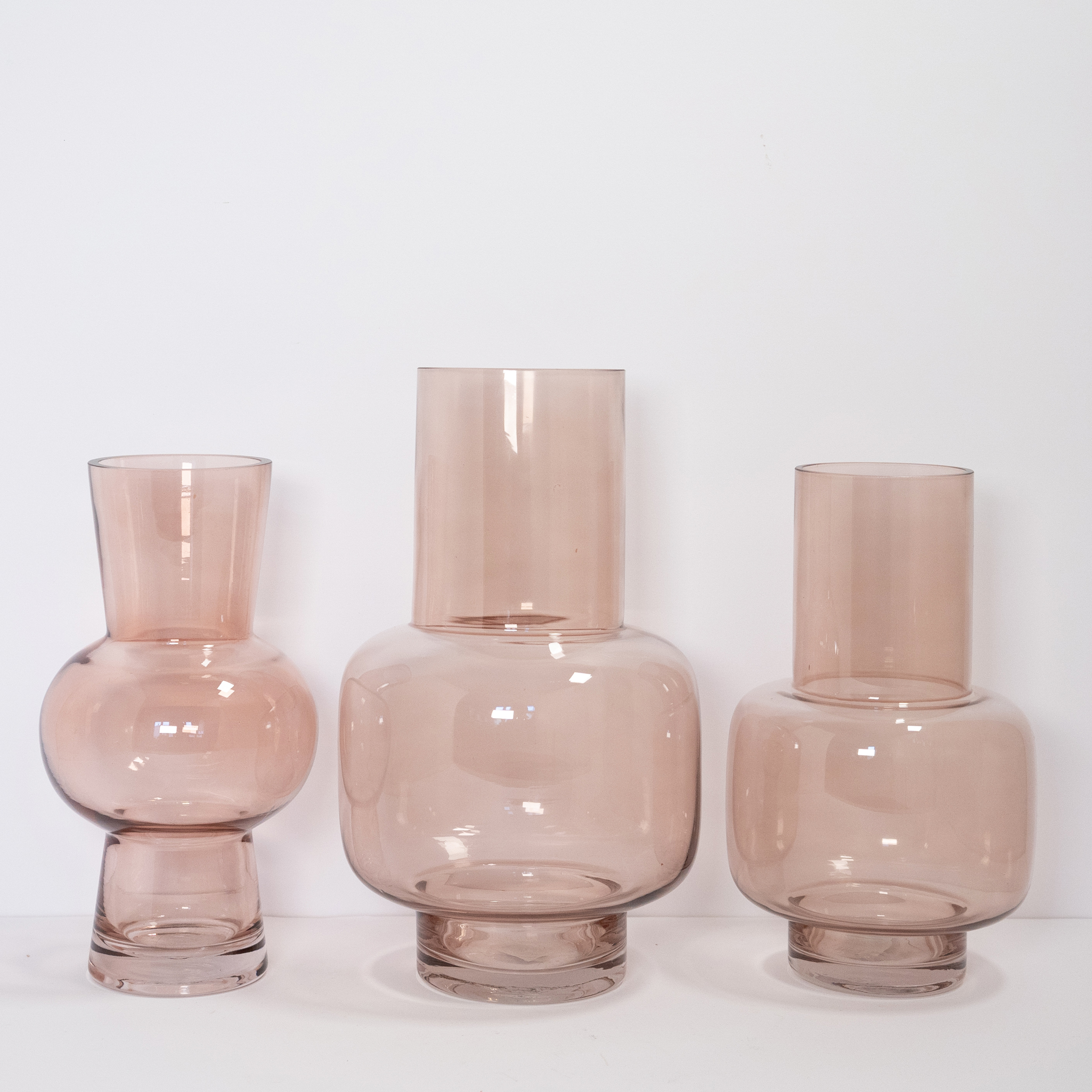 Schöne Glasvase in der Farbe rosé kann mit vielen anderen Vasen kombiniert werden.